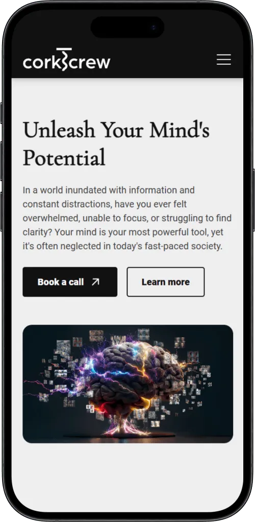 Corkscrew, a consultancy specializing in mental awareness and cognitive enhancement for individuals and organizations, lacked a platform to represent their brand or attract new clients, which became a pressing issue as their busiest season approached.