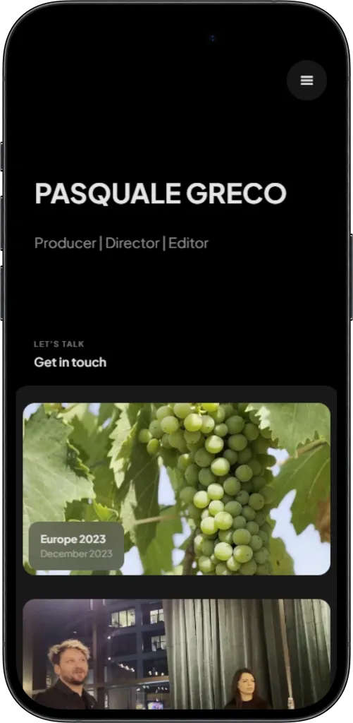I engineered a custom solution using Webflow's CMS and Vimeo's API, creating an efficient video preview system that loads fast while maintaining professional quality. The platform features an intuitive backend that lets Pasquale update his portfolio without touching code, while delivering a seamless viewing experience for potential clients.